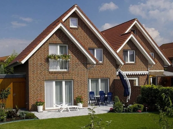Красота фасада дома в баварском стиле зависит от качества материала. У хорошего кирпича должна быть ровная, гладкая поверхность без сколов. Силикатные типы из-за низкой прочности и плохой устойчивости к влаге быстро разрушаются, поэтому не подходят для декоративной кладки.