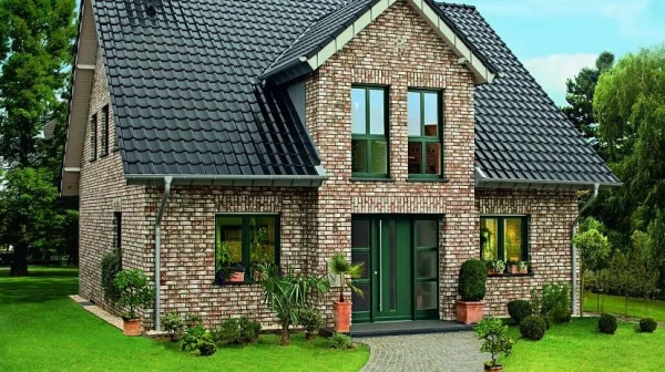 Коттедж, декорированный по технологии, не надо дополнительно украшать. Цветовая палитра баварской кладки для дома выглядит просто и лаконично. Оттеночные переходы между тонами создают на фасаде оригинальные картины, орнаменты и изображения. При помощи акцентов можно выделить часть стены, перевести внимание к двери, окнам.