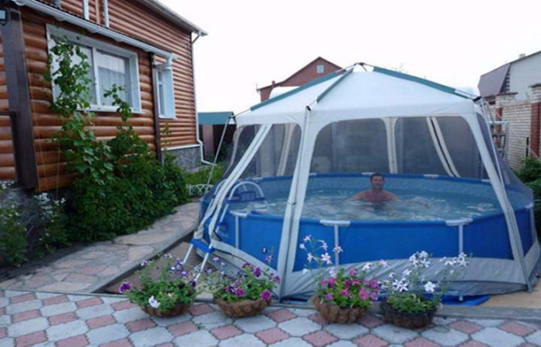 - Защитить купающихся от ультрафиолета солнечных лучей. Гораздо удобнее плавать в жару, находясь под защитным навесом в затененном пространстве.