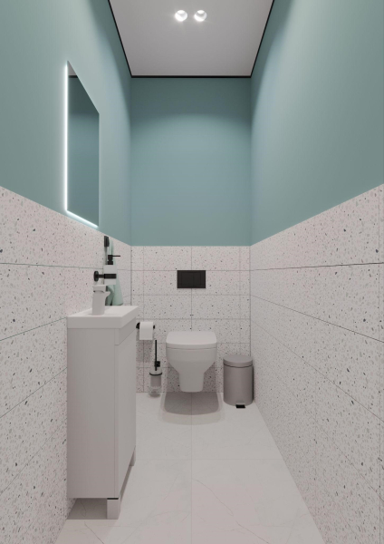 Если санузел совмещённый, то появляется ещё одна зона — место для установки унитаза.