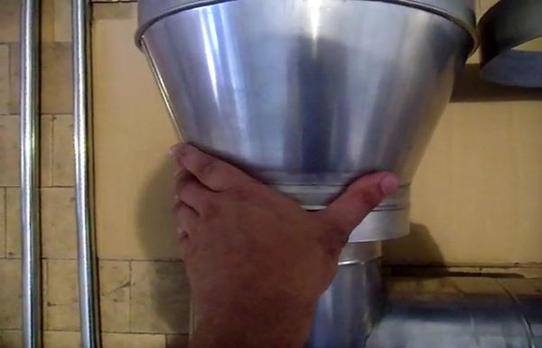 - По конденсату. В этом случае верхний торец нижестоящей секции имеет расширенную развальцовку и верхняя часть вставляется в нее как в чашу. Делается это для того, чтобы продукты конденсации не вытекали через шов на наружную поверхность дымоходной трубы.