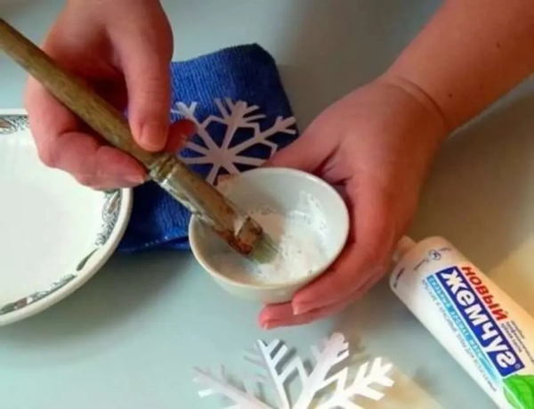 Есть еще один вариант – самодельная краска. По сути это даже не краска, а состав для фиксации разноцветной пудры, конфетти или других мелких и легких украшений. В частности, можно взять небольшой кусок мыла, растереть его и растворить в воде. Если вы стекло украшаете, то массу нужно хорошенько взбить до образования пены. Воздушную почти пасту легко наносить, мелкие пузырьки так и останутся после высыхания покрытия. А если сюда еще и блестки, мелкие цветные волокна добавить, то получится разноцветный результат. Для рисования такой краской можно использовать разные по цвету, фактуре и размеру наполнители, что позволит создавать целые композиции, которые позднее легко смоются без использования каких-либо чистящих средств.