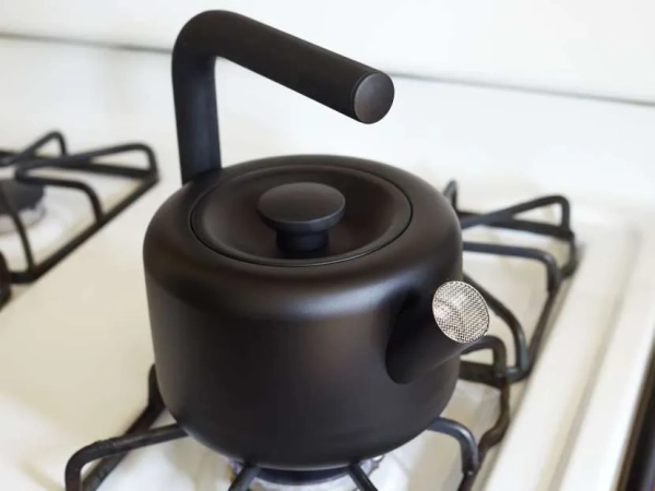 - Appetite Maison. Чайник в современном стиле: матовая черная эмаль с белыми надписями; толщина стенок 0,7 мм, капсульное дно, за раз можно вскипятить 3 л воды. Покупатели находят привлекательной нестандартную геометрию корпуса с незамкнутой формой ручки, есть съемный свисток с негромким звуком. Чайник рассчитан на долгий срок эксплуатации, но свисток снимать неудобно.
