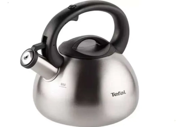 - Tefal C7921024. Чайник обладает аккуратной и устойчивой формой, объем 2,5 л. Ручка сделана из термостойкого бакелита, на ней расположен клапан для открывания носика (на носике установлена насадка-свисток). В число плюсов входит стильный дизайн с матовой полировкой, толстое дно и стенки корпуса, равномерный нагрев. Некоторые считают недостатком слишком громкий звук свистка.
