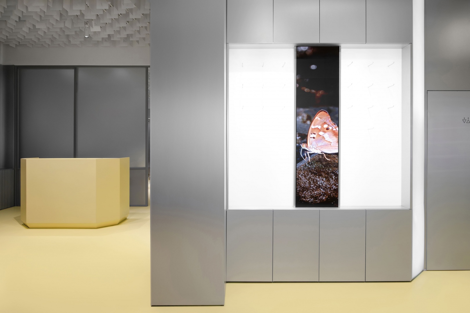 Архитектурное бюро .dpt завершило проект постоянной экспозиции павильона №28 «Пчеловодство» при Государственном биологическом музее имени К. А. Тимирязева на ВДНХ. В обновленных залах разместились фонды музея, посвященные насекомым, в том числе пчелам. В рамках проекта команда переосмыслила пространство площадью 520 квадратных метров через современный визуальный язык. Отсутствие исторического интерьера позволило полностью реорганизовать планировку в соответствии с актуальной концепцией музея. Теперь пространство разделено на функциональные зоны, от входной группы с информационной стойкой, сувенирным магазином и медовым киоском до лаборатории для мастер-классов с микроскопами и лаборантской комнаты. Основной зоной стала экспозиция в правой части павильона, объединившая более 1100 объектов. Архитектурной доминантой проекта выступает форма шестигранника — отсылка к пчелиным сотам, — а ключевым формообразующим элементом стала центральная изогнутая стена с металлизированным покрытием, напоминающим спинку жука-скарабея. Павильон «Пчеловодство» стал для бюро первым опытом работы с постоянной музейной экспозицией и потребовал тесного сотрудничества с научными кураторами.