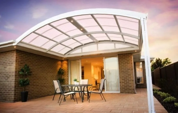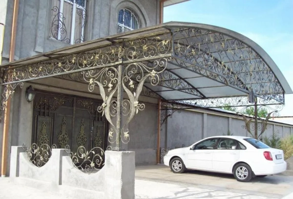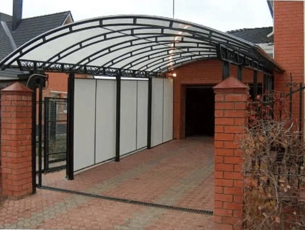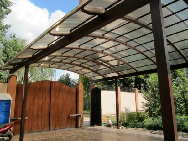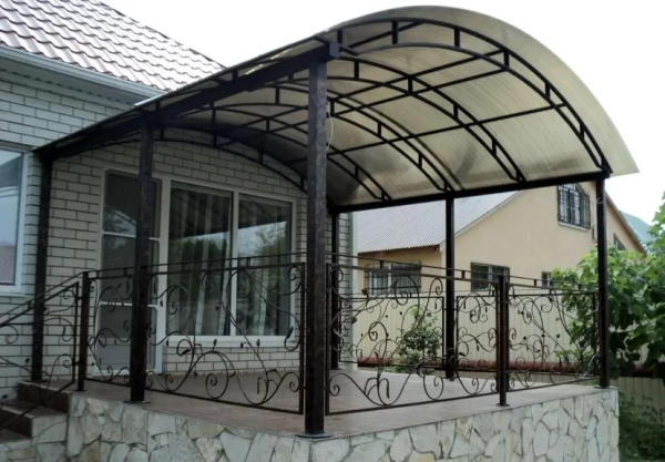 - Поликарбонат легко гнётся, из него получаются изящные навесы арочной формы.