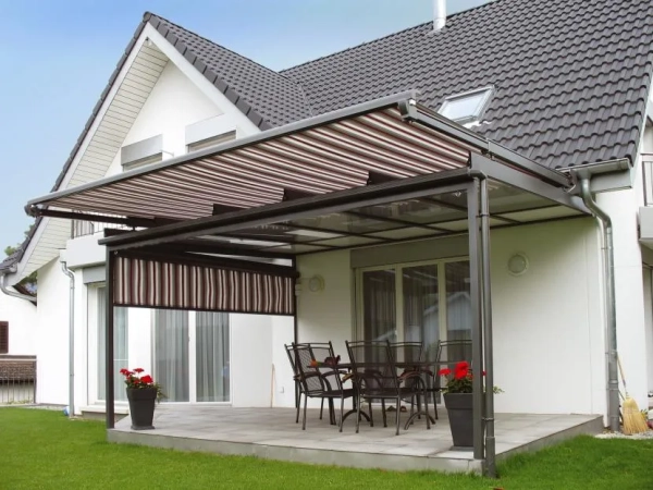 Распространены следующие варианты дизайна навесов в частном доме: