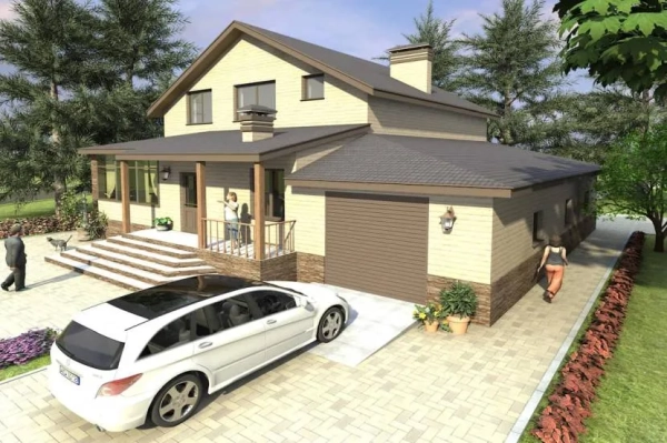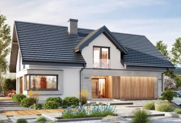 - Проекты разнообразны по внешнему исполнению. Дом может быть одно- и двухэтажным, иметь дополнительно мансарду, террасу, балкон или веранду. Строение можно дополнить гаражом, различными пристройками и цокольным этажом.