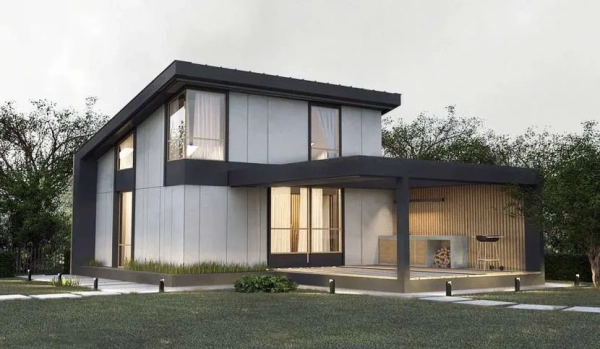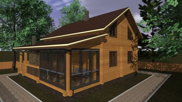 - Архитектурные дополнения. Существуют стандартные (например, с небольшим крыльцом) и расширенные варианты. Балкон и веранда увеличат стоимость, но сделают коттедж комфортнее и красивее.