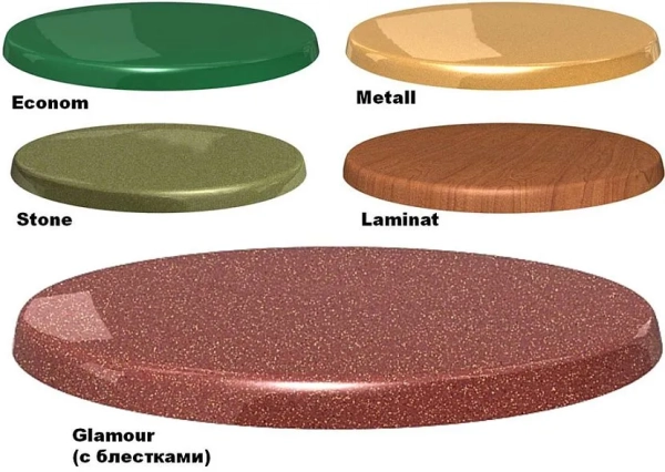 - Вид основы столешницы. Это может быть ДСП или МДФ. Варианты отличаются показателем плотности прессованной плиты и составом компонентов. Большей стойкостью к влаге характеризуется МДФ. К тому же материал считается более безопасным в контексте токсичности испарений.