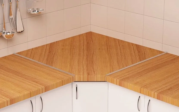 В некоторых случаях столешница состоит из двух деталей – к примеру, в Г-образной мебели для кухни. Соединение частей в таком случае выполняется с применением стыковочной планки.