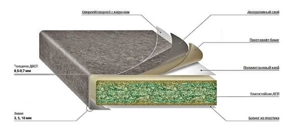 Несмотря на то, что рабочая поверхность кухонной мебели может изготавливаться из разных материалов, технология постформинг применима исключительно для деталей из МДФ и ДСП. Суть ее заключается в ламинировании заготовок тонким слоем из пластика под воздействием высокой температуры (от 220°С).
